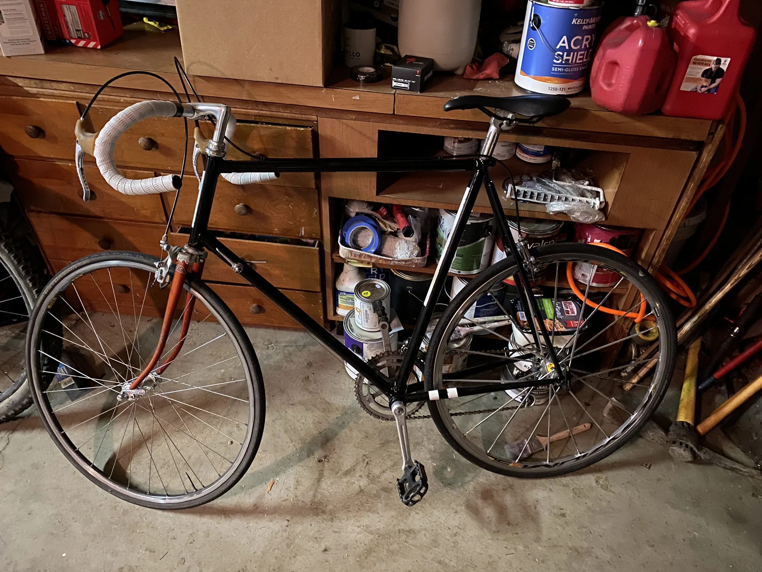 The project complete with most components installed. In progress and still required a paint job and rear brake!